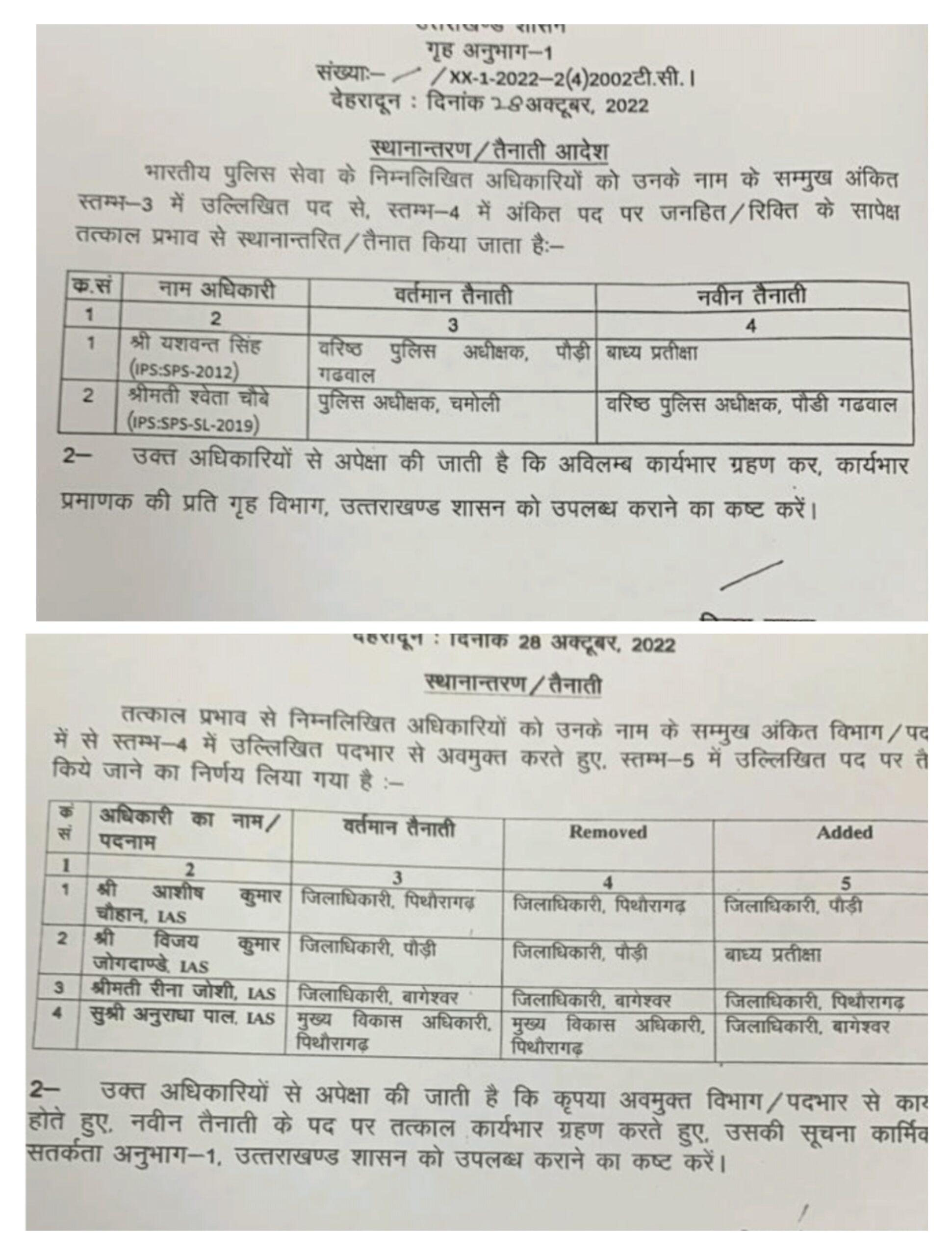 उत्तराखंड 4 IAS और 2 IPS अधिकारियों के ट्रांसफर।। IPS श्वेता चौबे को बनाया गया एसएसपी पौड़ी।। IAS अनुराधा पाल…