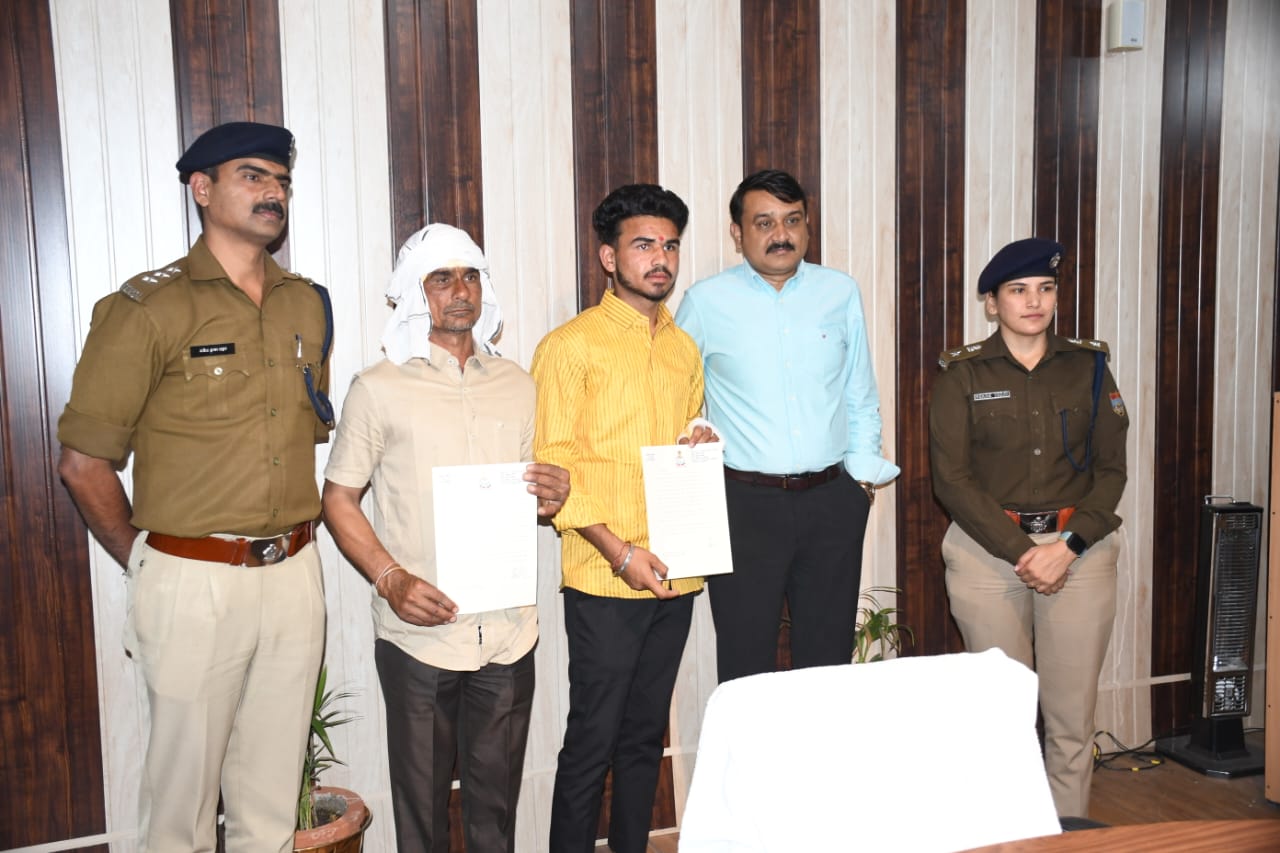 बाप बेटे के हौसले के सामने हारे बदमाश, SSP ने किया सम्मानित