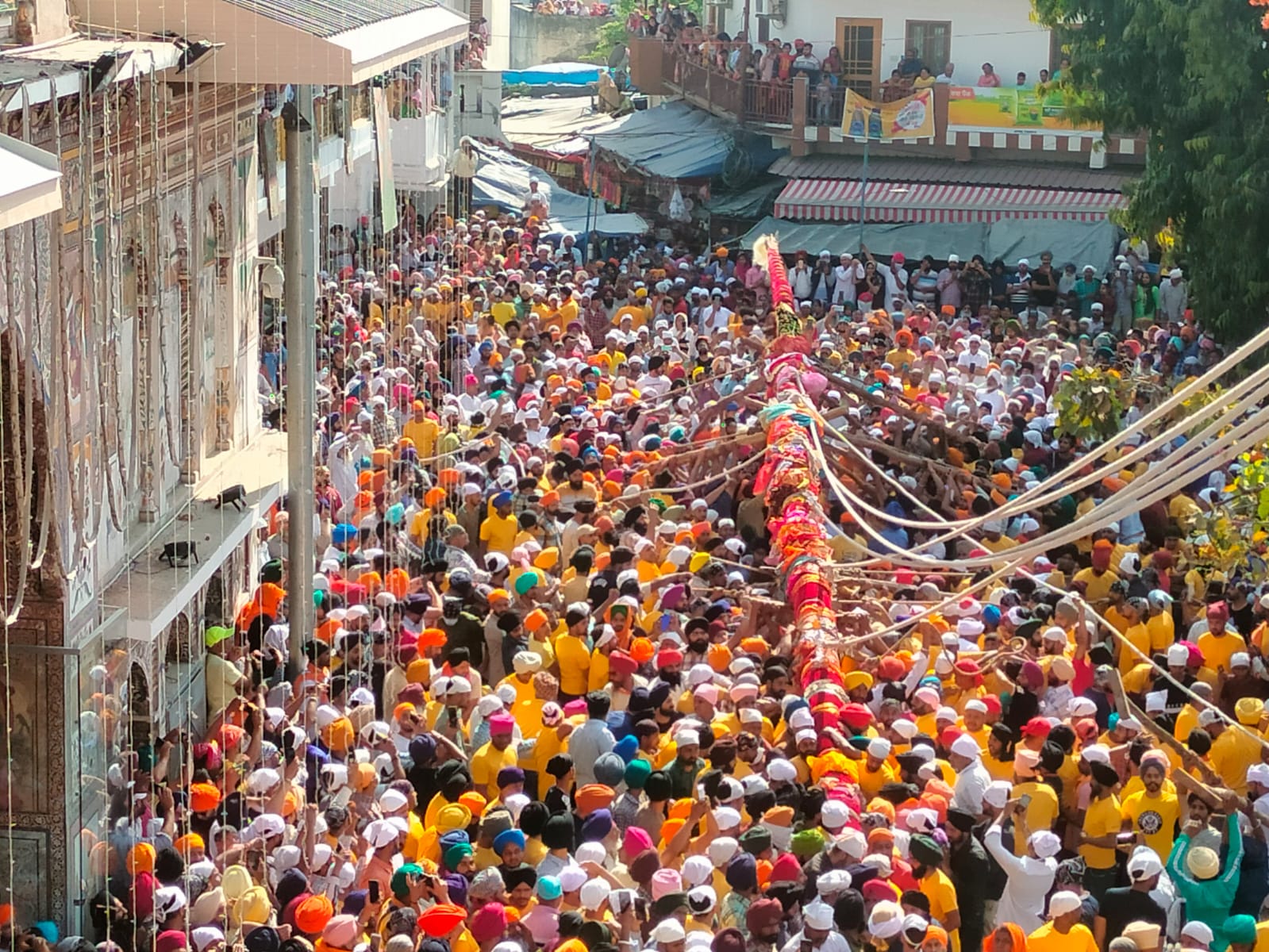 श्रीमहंत देवेंद्र दास महाराज की अगुवाई में श्रद्धालुओं ने 90 फीट ऊंचे श्रीझंडे जी का किया आरोहण।।