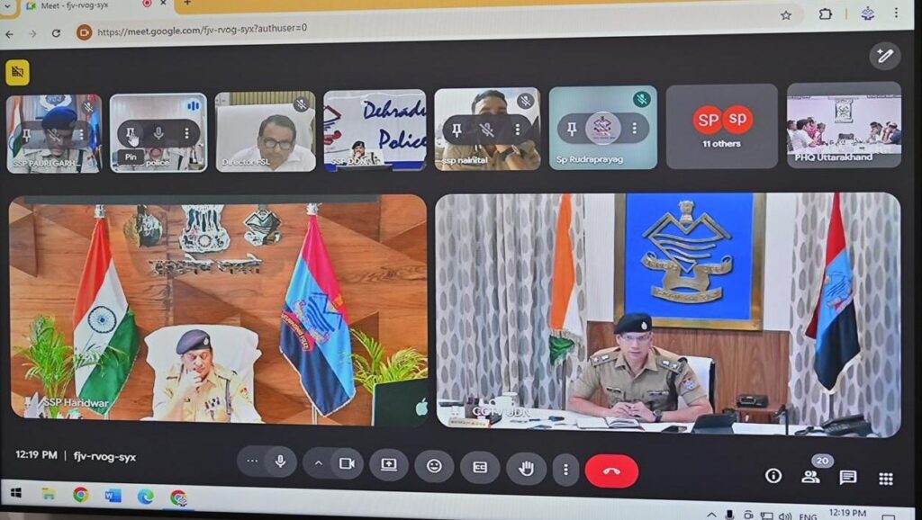 DGP दीपम सेठ की अध्यक्षता में आज वीडियो कॉन्फ्रेंसिंग के माध्यम से गढ़वाल एवं कुमाऊ रेंज सहित समस्त जनपदों के वरिष्ठ/पुलिस अधीक्षकों के साथ एक महत्वपूर्ण उच्च स्तरीय समीक्षा बैठक आयोजित की गई।