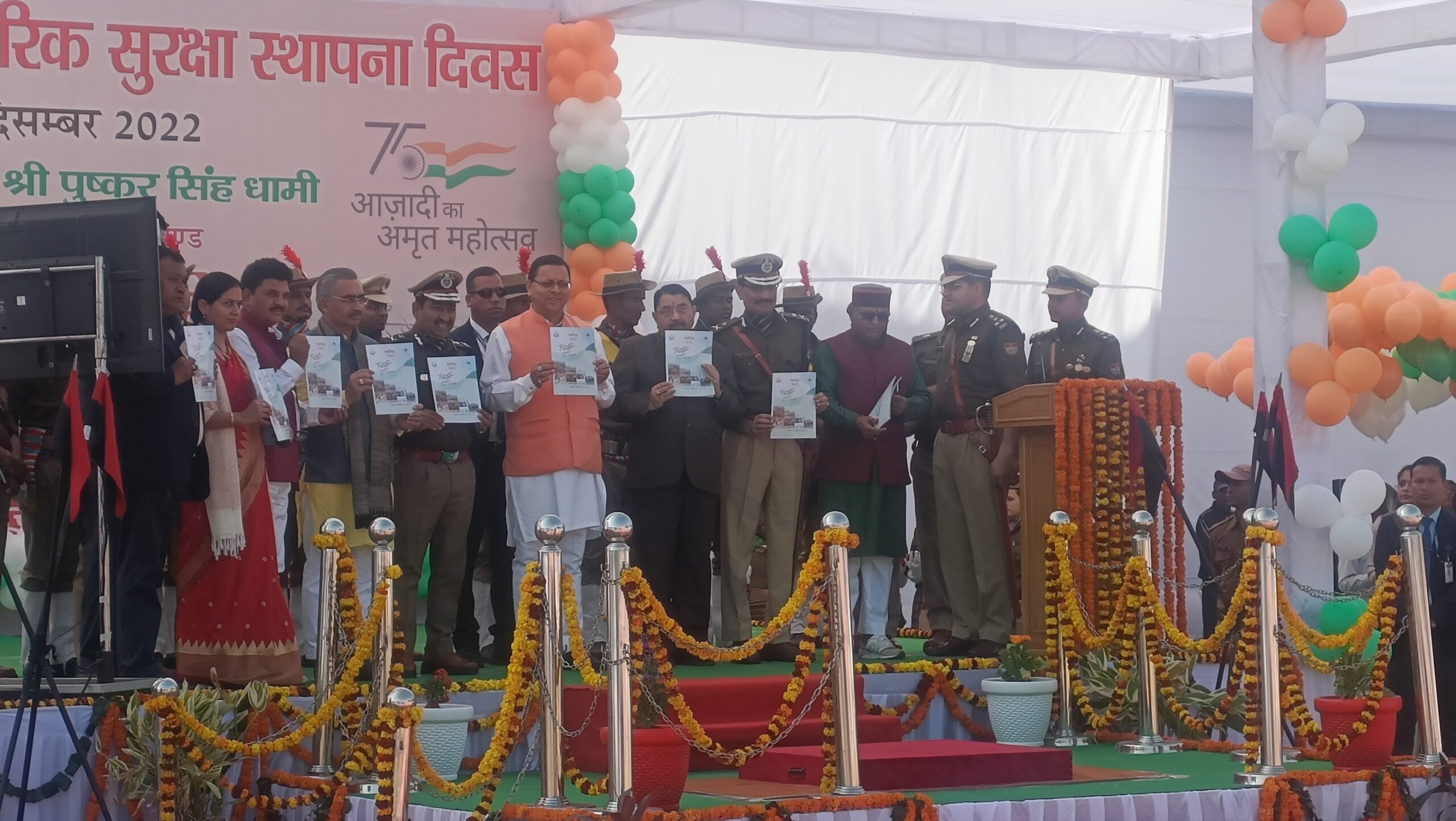 स्थापना दिवस पर आयोजित रैतिक परेड कार्यक्रम में CM धामी सहित मेयर,विधायक उमेश काऊ और खजांदास रहे मौजूद।।