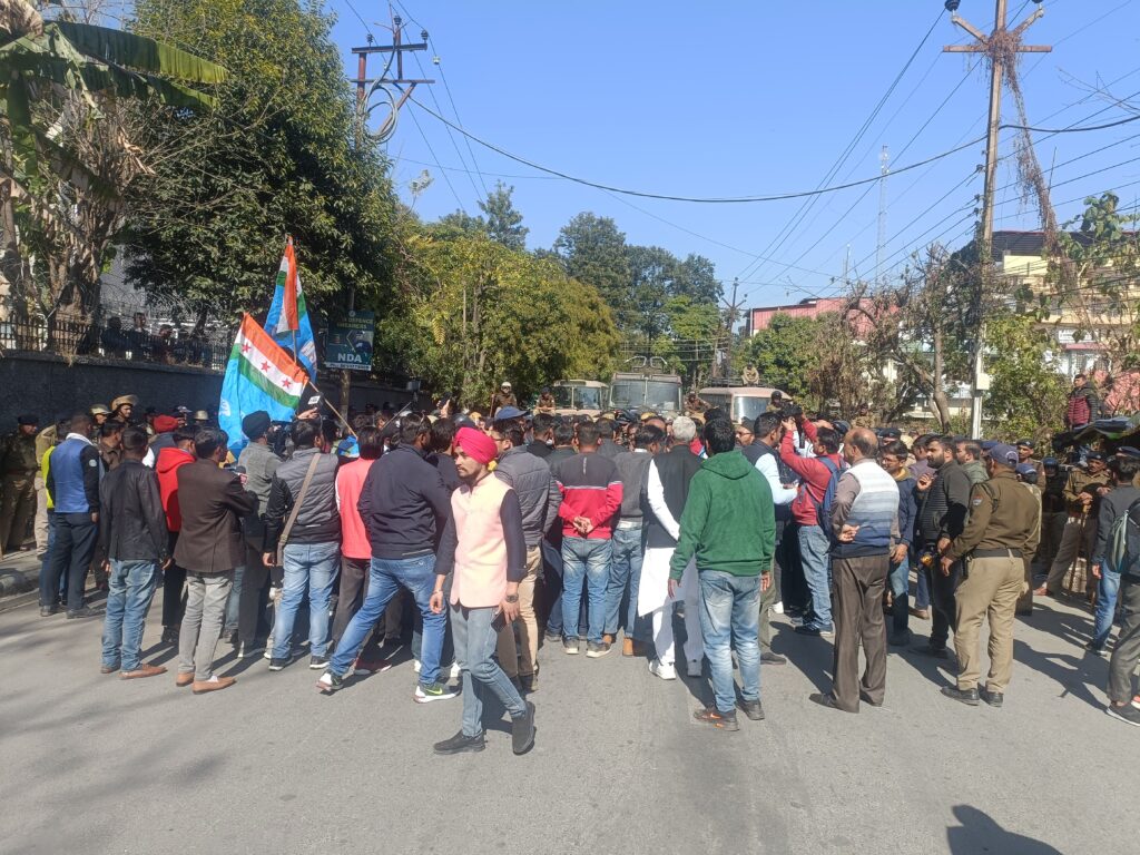 आपसी विवाद के बाद कुछ ही संख्या में सचिवालय घेराव के लिए पहुंचे कांग्रेसी।।