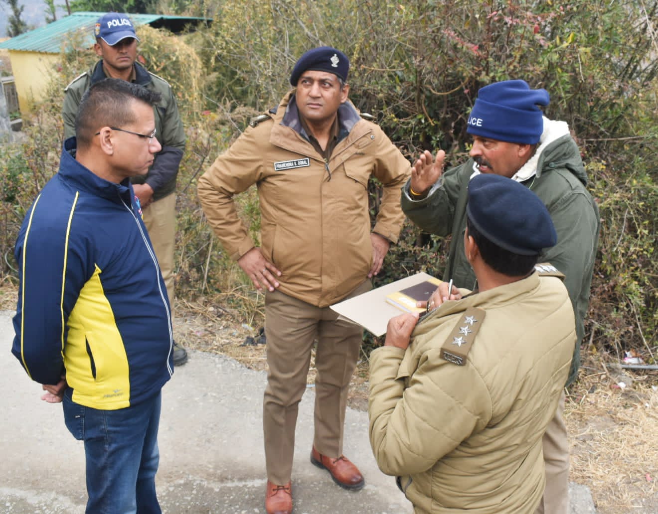 जोशीमठ के भू धंसाव प्रभावित गावँ में पहुंचे SP चमोली और SDRF कमांडेंट